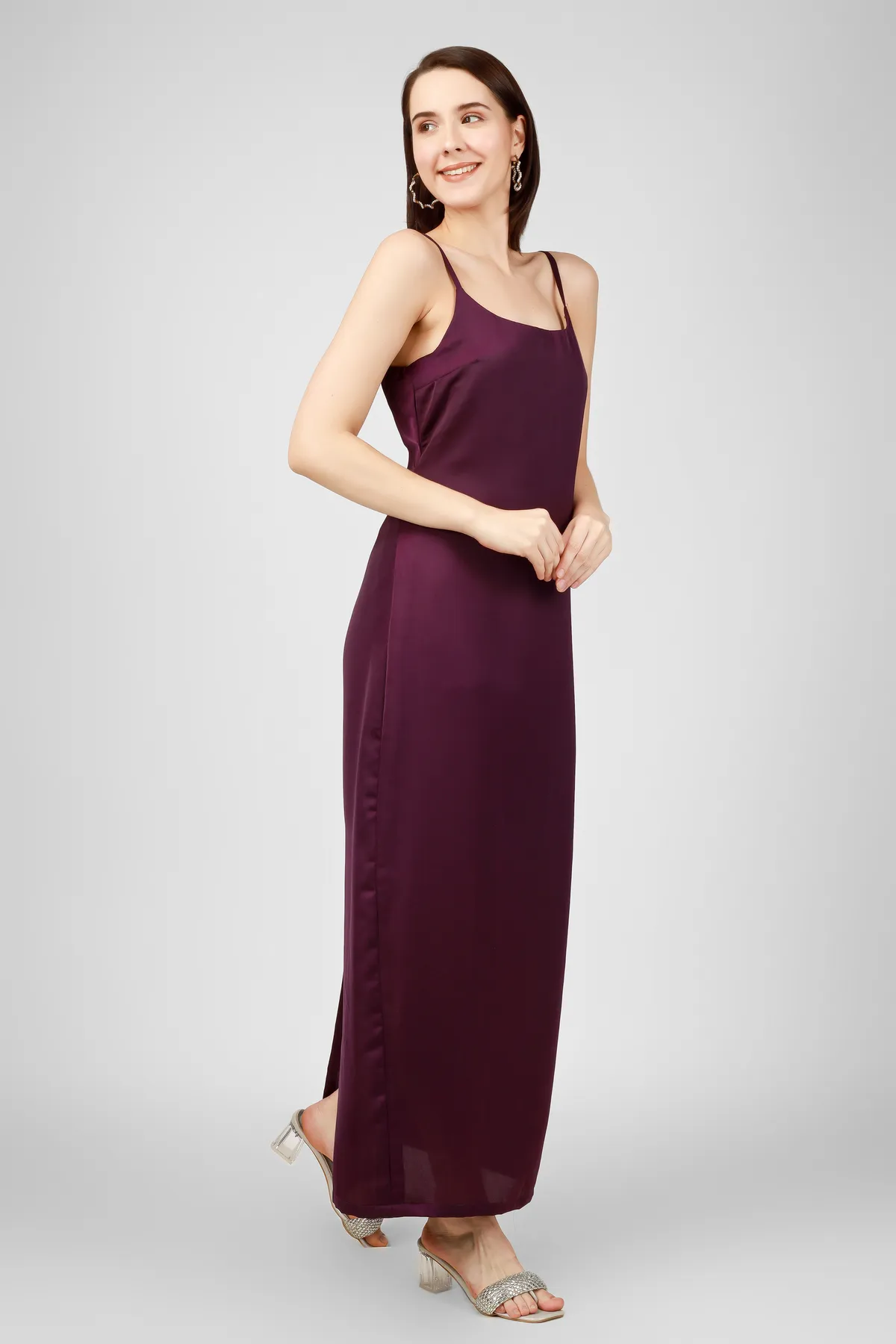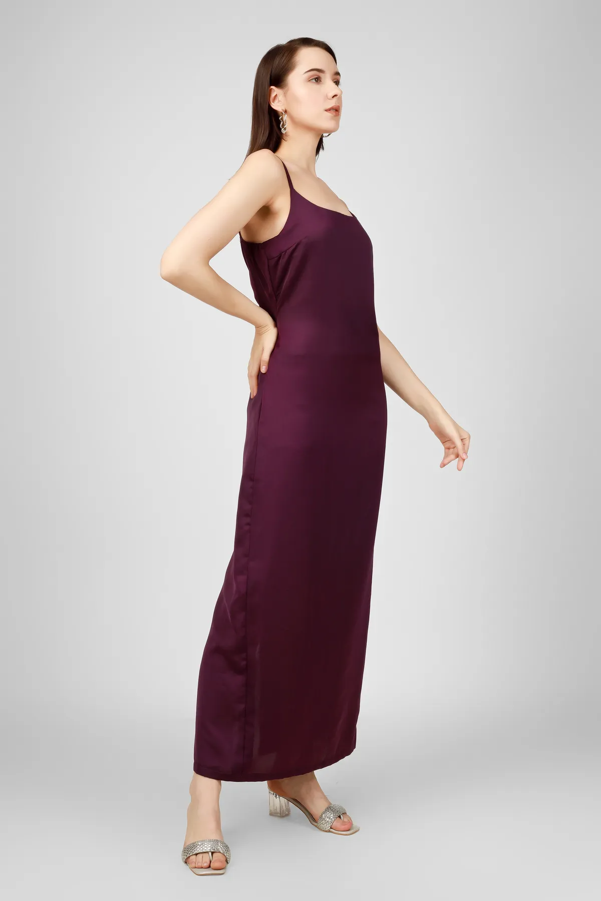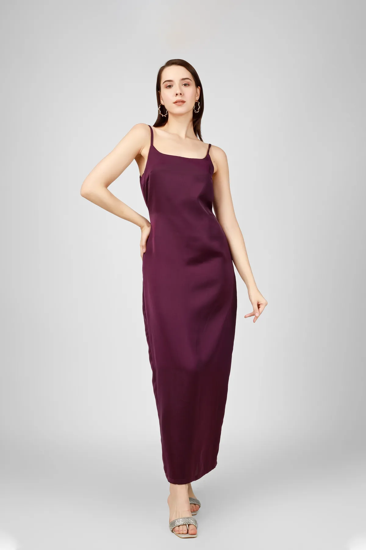 - Solid Wine maxi slip dress